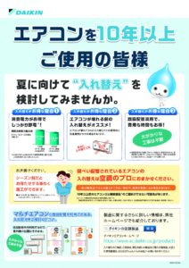 7月頃~お盆前時期まではエアコンの点検修理・入替工事依頼のハイシーズンとなります!