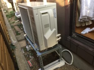 せっかくの高暖房機種ですので雪に埋もれないように室外機には平置架台を取付しました。